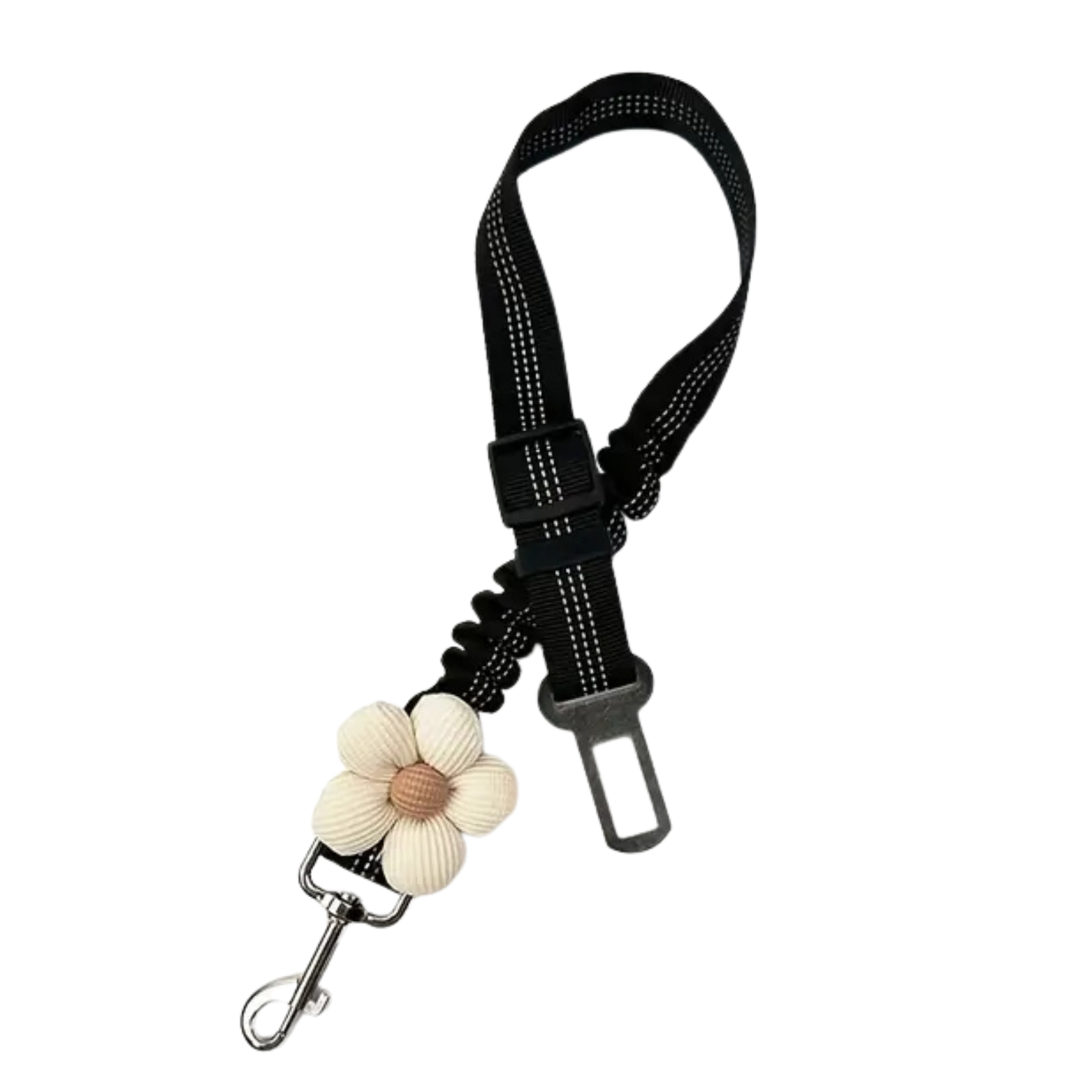 De riem is gemaakt van stevig nylon en voorzien van een metalen gesp die direct in de autogordelhouder past. Dankzij de verstelbare lengte (58–79 cm) past de gordel bij zowel kleine als grote honden.